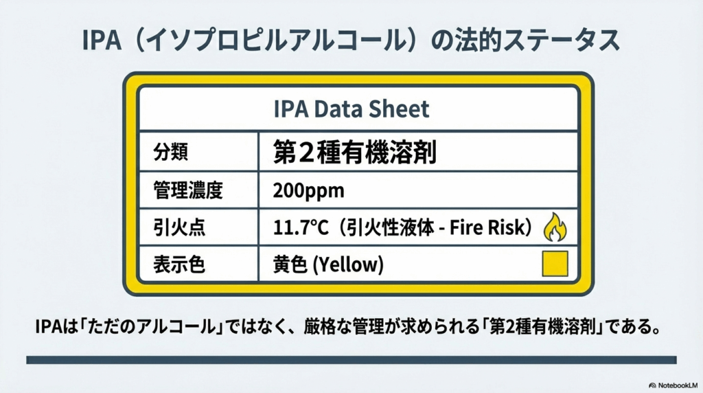 1. IPAは第2種有機溶剤であり、有機則の規制対象
