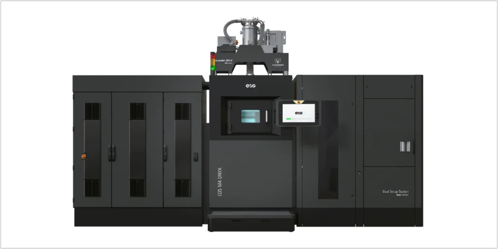 レーザー粉末床溶融結合 L-PBF方式 の3DプリンターであるEOS M4 ONYXは、産業規模の拡大に対応する大型ビルドボリューム、高スループット、高信頼性およびサステナビリティを追求した設計を特徴としている。エネルギー、宇宙、防衛、航空、半導体などの高付加価値産業における実生産ラインでの安定稼働に対応した次世代機という位置づけだ。