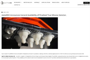 Axtra3D、完全な純正シリコーン材料「TrueSilX50」の正式提供を開始