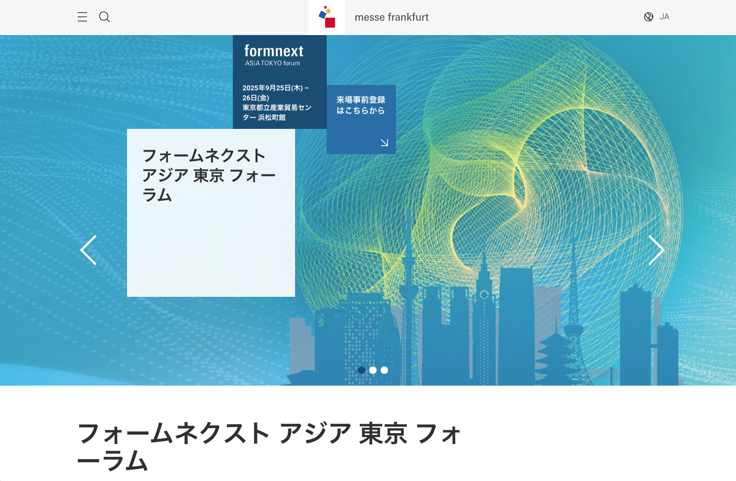 アディティブ・マニュファクチャリング(AM/積層造形)に特化した国内有数の専門イベント「フォームネクスト アジア 東京 フォーラム 2025」が、2025年9月25日と26日の両日、東京都立産業貿易センター浜松町館にて開催された。主催はメッセフランクフルト ジャパン株式会社であり、今回で6回目の開催となる。(上部画像は「フォームネクスト アジア 東京 フォーラム 2025」Webサイトより。出典:メッセフランクフルト ジャパン株式会社)