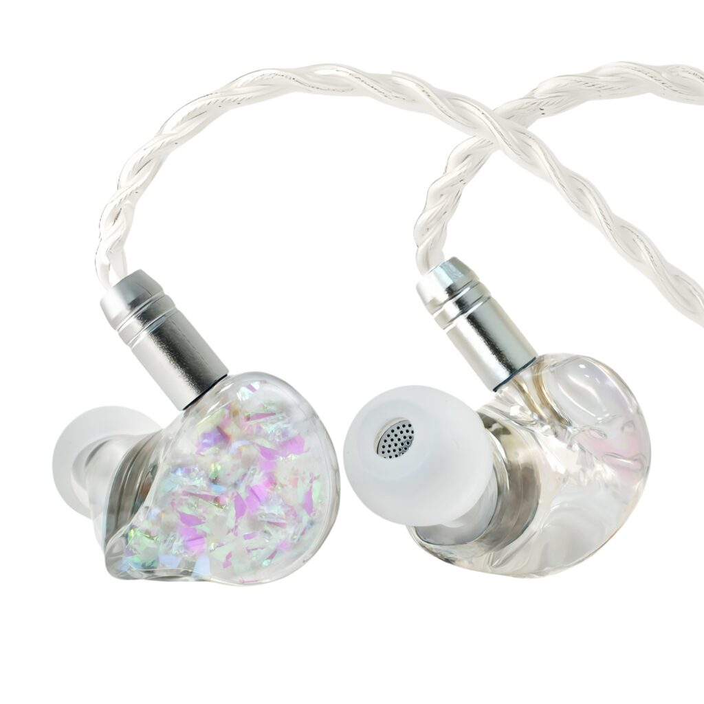 カスタムIEM開発で培った形状設計を応用し、耳への高いフィット感を実現した。これにより、高い遮音性と長時間装着時の快適性を両立している。従来の成形プラスチック筐体では難しかった滑らかな曲線構造を採用することで、ドライバー本来の性能を最大限に引き出している。 - 透明UVレジン筐体とハンドメイド仕上げ