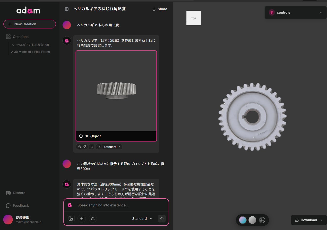 無料プランで触ってみた限りだが、サービスは発展途上中であるため、制限もあるようだ。ヘリカルギアの生成をシェアラボ編集部で指示したところ、当初形状を正しく生成できなかった。これは形状をAIが正しく理解できなかったのではなく、サービス提供側が、計算資源としてのトークン量に制限を設けてあることが理由だろうと思われる。