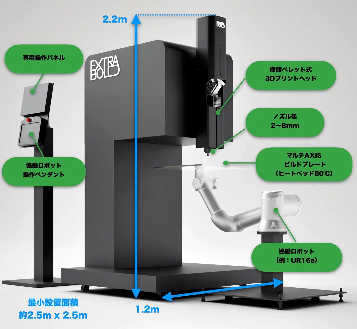 株式会社ExtraBoldは、協働ロボット型ペレット式3Dプリンター「REX-BUTLER」に採用されている独自の基本構造「バトラー方式」について、特許第7800928号を取得した。ヘッドを固定しロボットがビルドプレートを動かすという逆転の発想で、設置性・安全性・コストの課題を解決する。