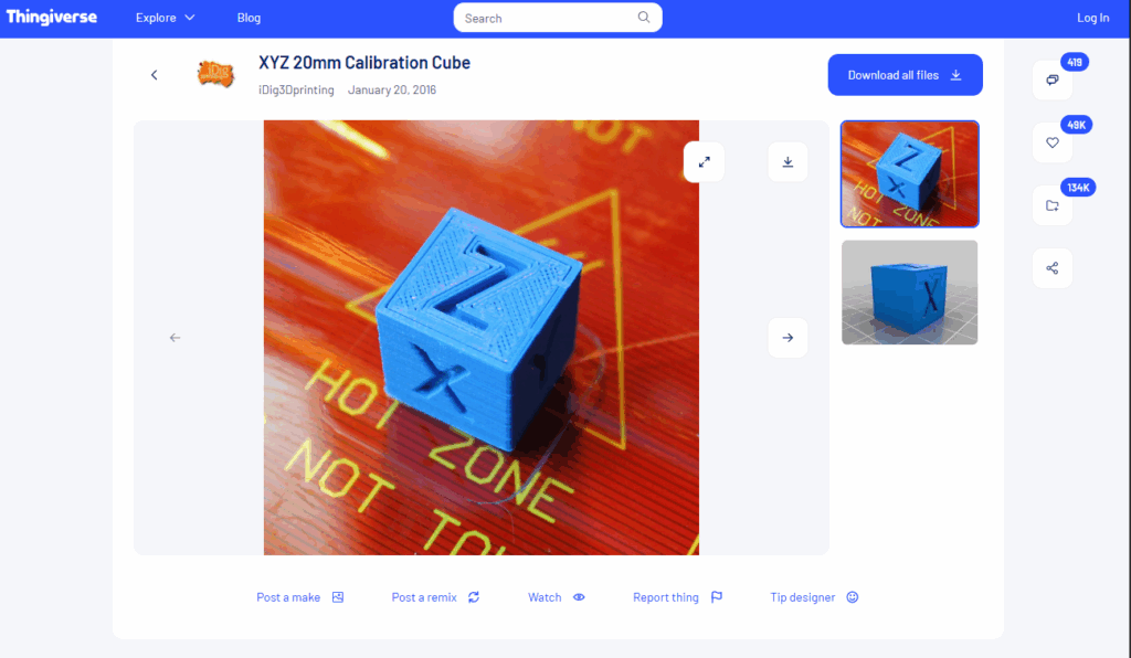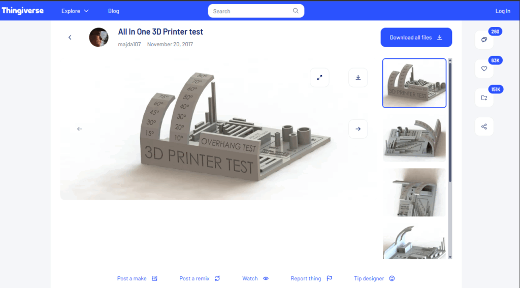装置自体のエラーはなく、動作も正常に見えても、こうしたゆがみが本体や部品に生じることで性能が低下することはありうる。この“気づきにくい異常”を発見するには、試験造形が最も確実かもしれない。小さなものから初めて造形物にゆがみや表面での傷などがないか目視やノギスによる確認などを行ってみよう。装置にプリセットされたモデルでも構わない。次に3つ程、試験造形に適した3Dモデルをご紹介するが、xyz各方向での造形に狂いがないかを簡単に確認できれば事足りる。