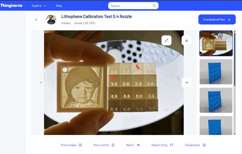 光造形や白系フィラメントの透過性確認に役立つ厚み比較モデル。